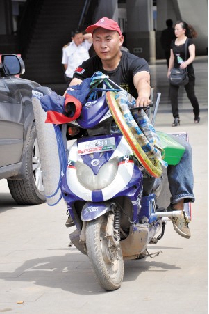 今年5月初老罗便开始着手准备设立移动修车铺的装备,他决定用一辆电动车作为大本营,“我专门准备了一个临时充电装置。”他说,很多电动车车主最头疼的问题就是骑着车半路突然没电了,因此临时充电装置必不可少。“车胎不小心被扎破也需要及时修补吧。”于是老罗还准备了多个内胎挂在电动车的一边扶手上,而另一边则挂上几个坐垫。接着,他把需要用到的修车工具统统放到了后备箱里。“我觉得叫移动修车铺太没创意了。”最后,老罗还不忘给自己的这套装备取名为电动车“120急救中心”,并在电动车尾部挂上了一块红色的标牌。